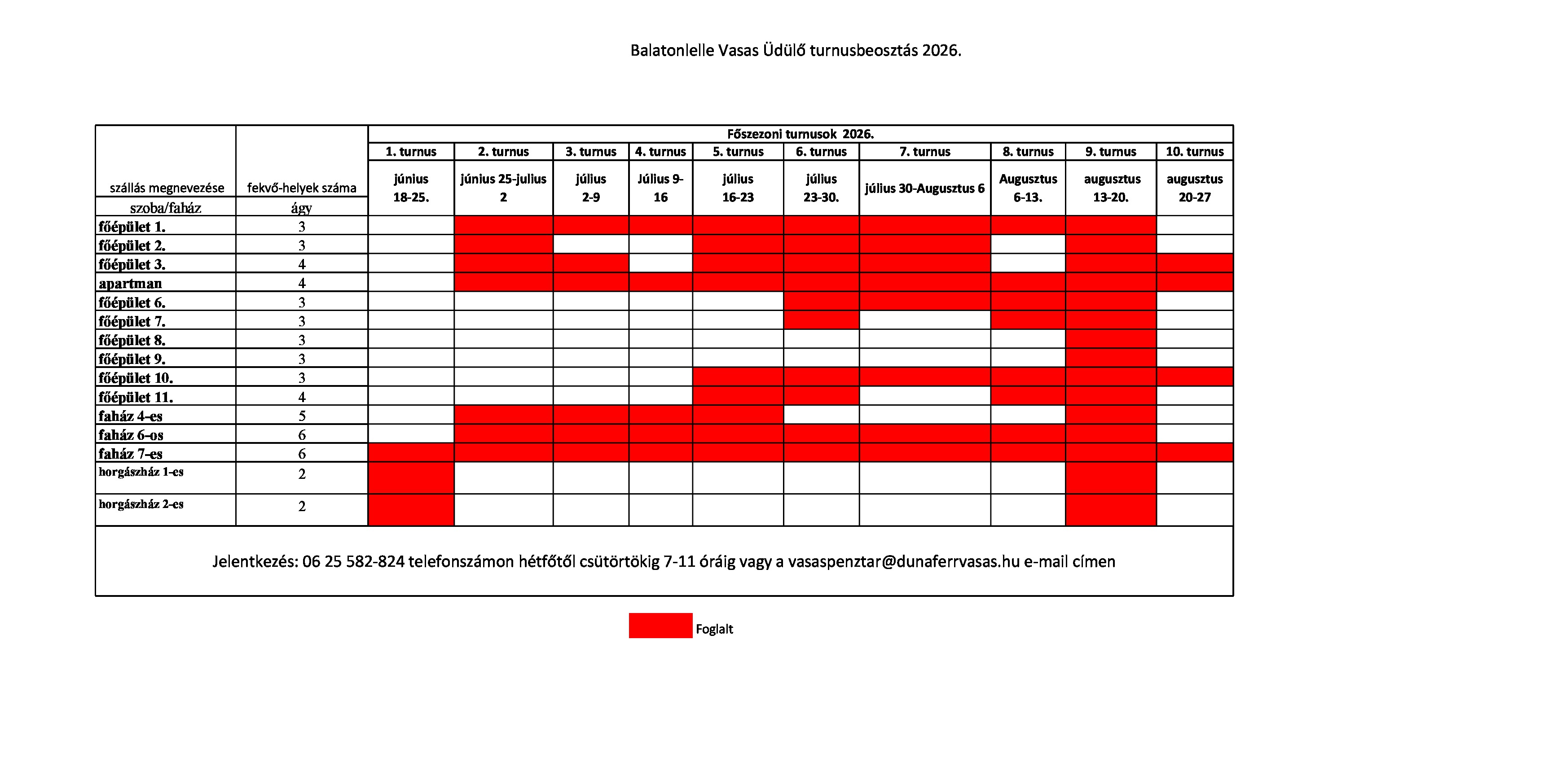 - az üdülési lehetőség heti turnusokban csütörtöktől csütörtökig tartó váltásban történik.